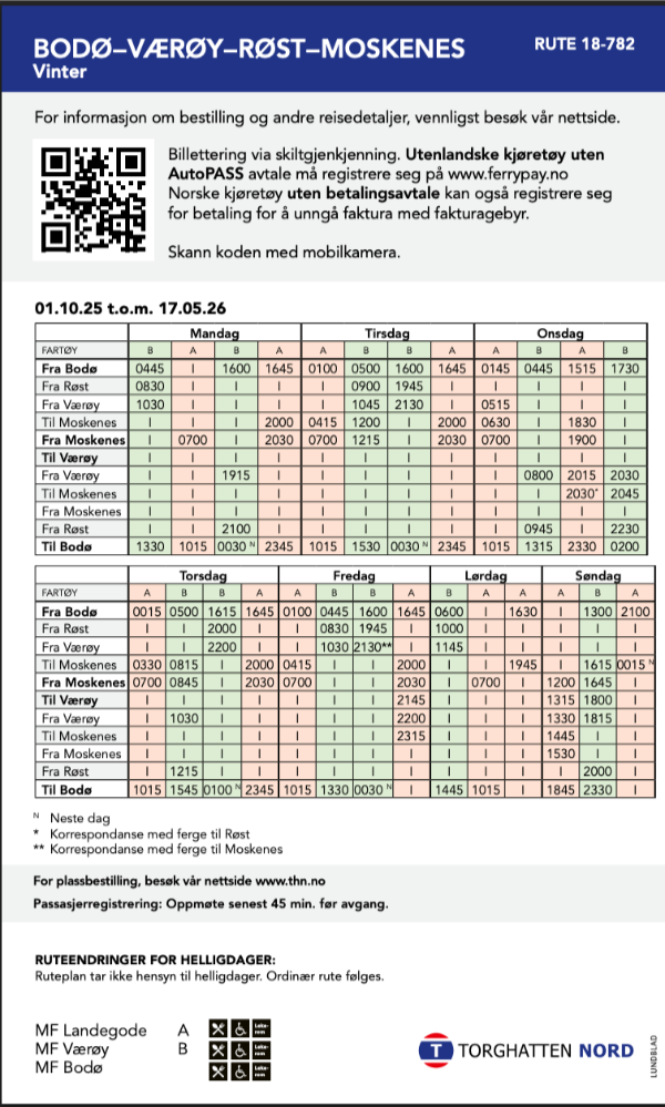 Spot guarantee on the Bodø – Røst – Værøy – Moskenes Ferry